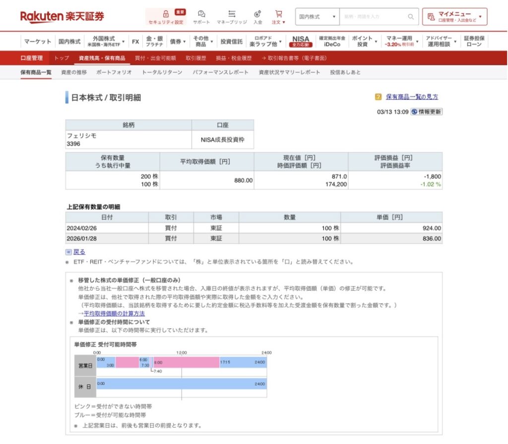 ナンピンしたものの、平均取得価額よりまだまだ含み損🥹