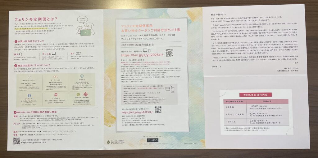 2025年からの株主優待は今までのスタイルをどーんと買えて『フェリシモ内で使える商品券』となりました。